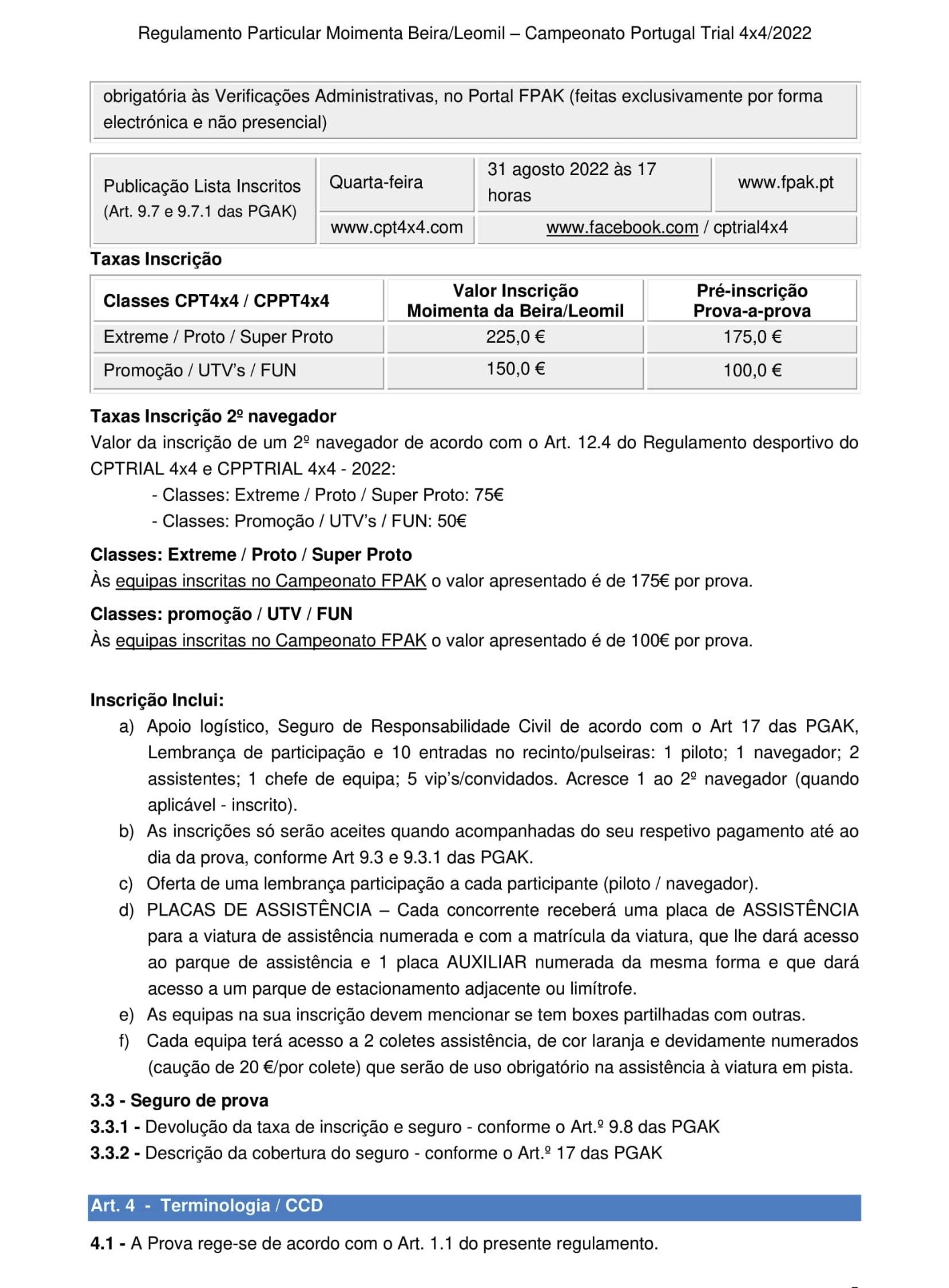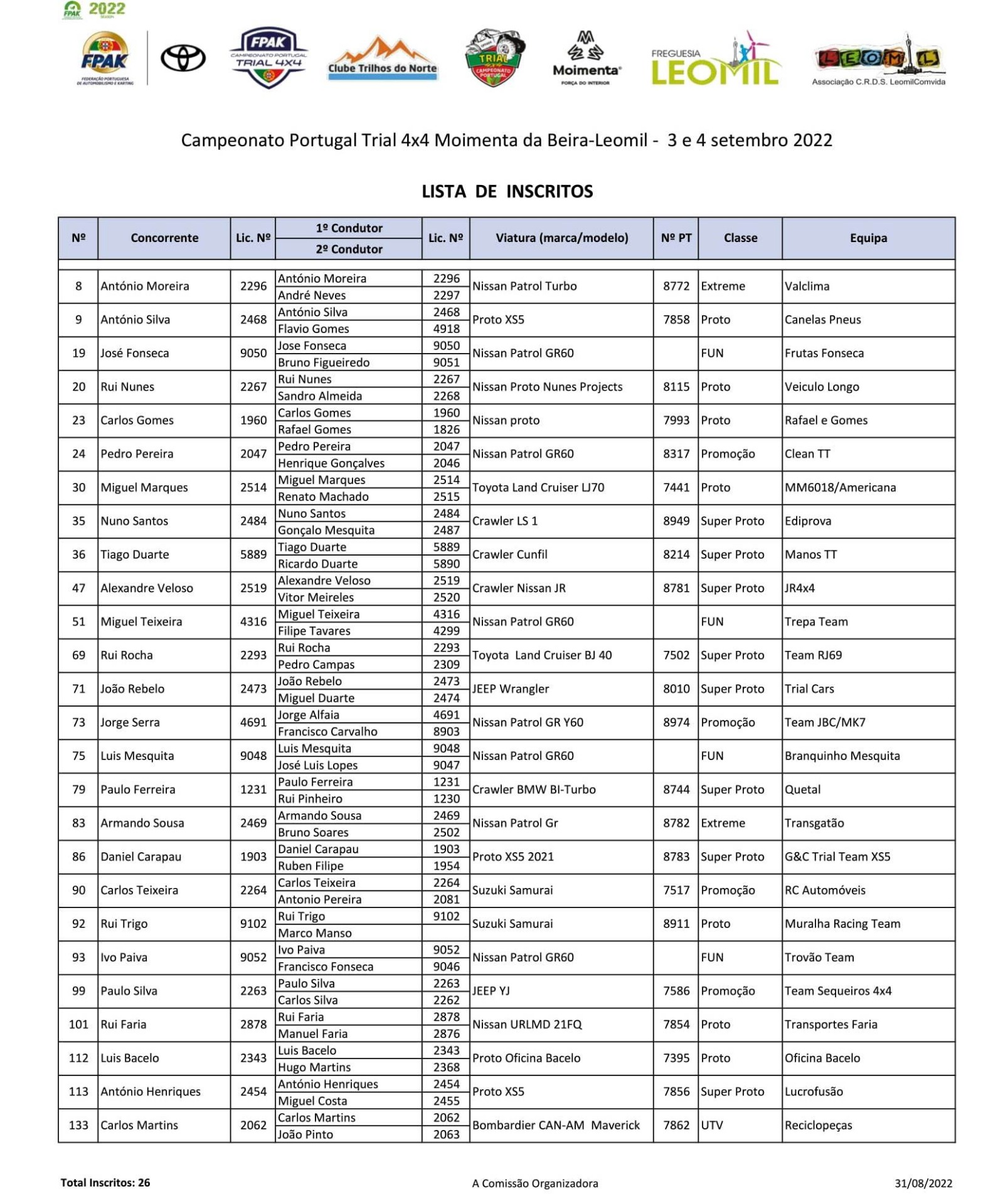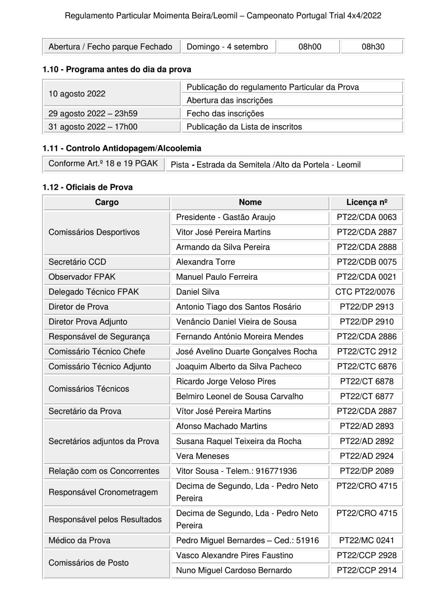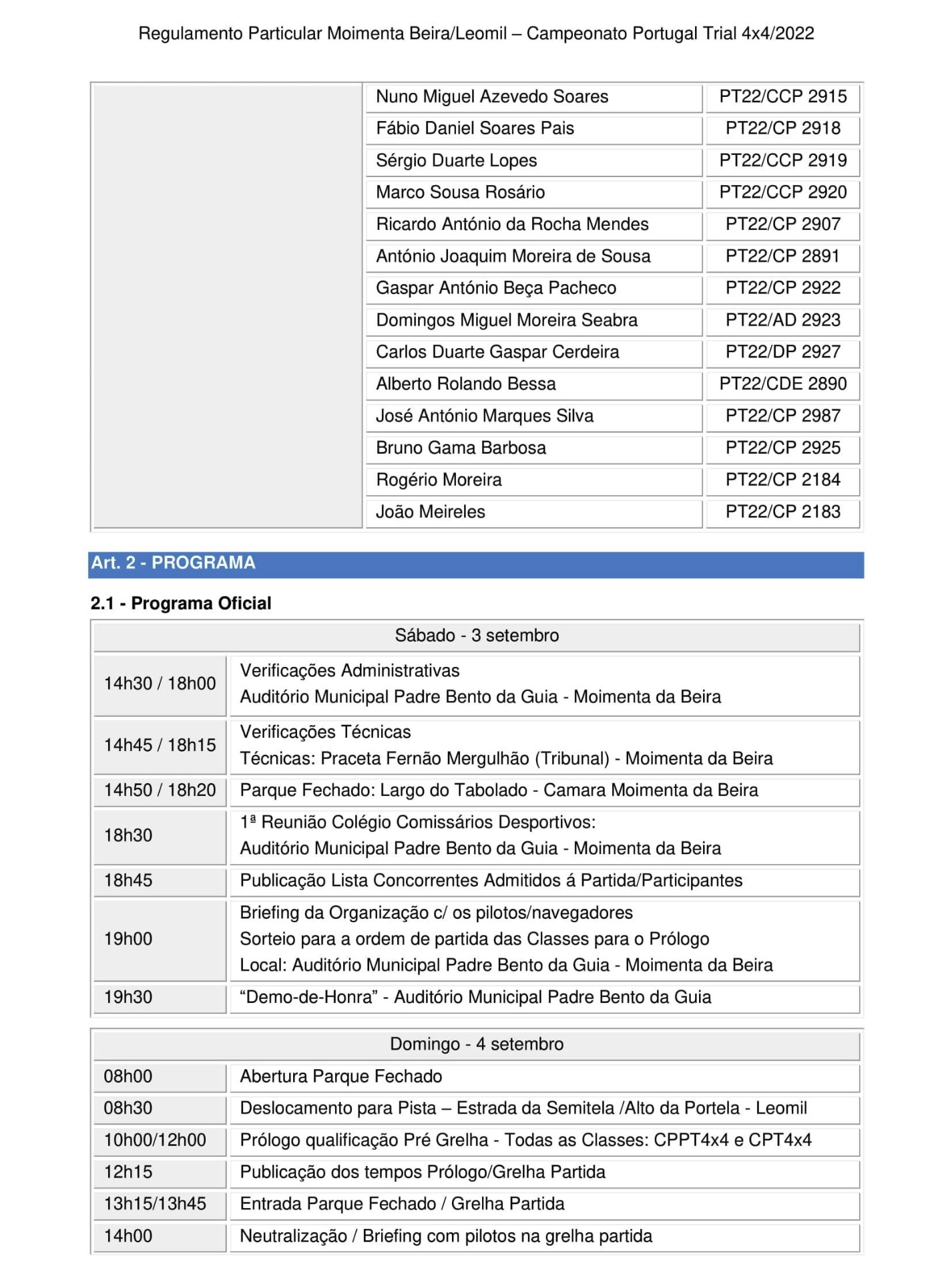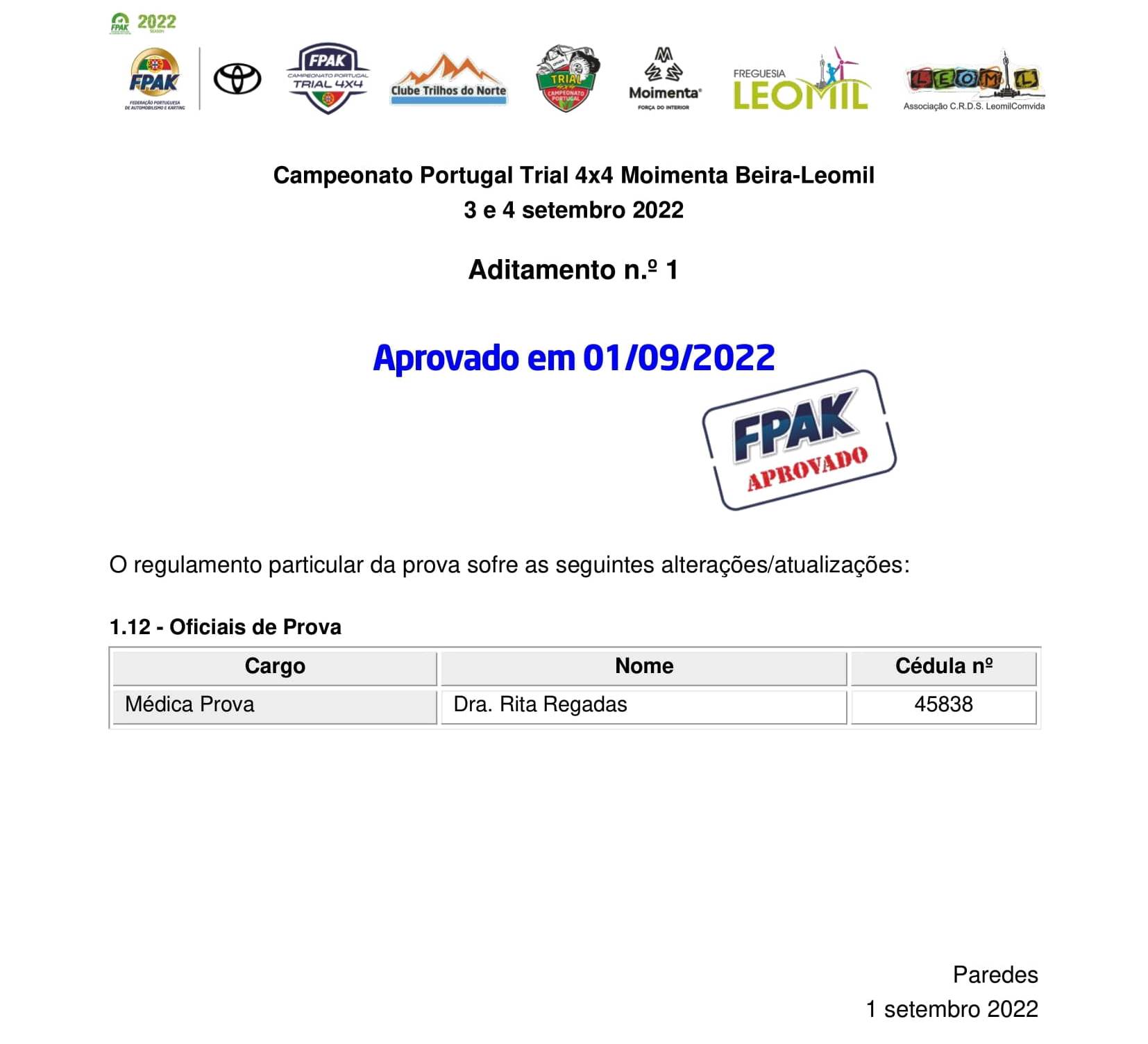 Lista de Inscritos + Aditamento Nº 1 + Regulamento Particular  + Mapa da Pista